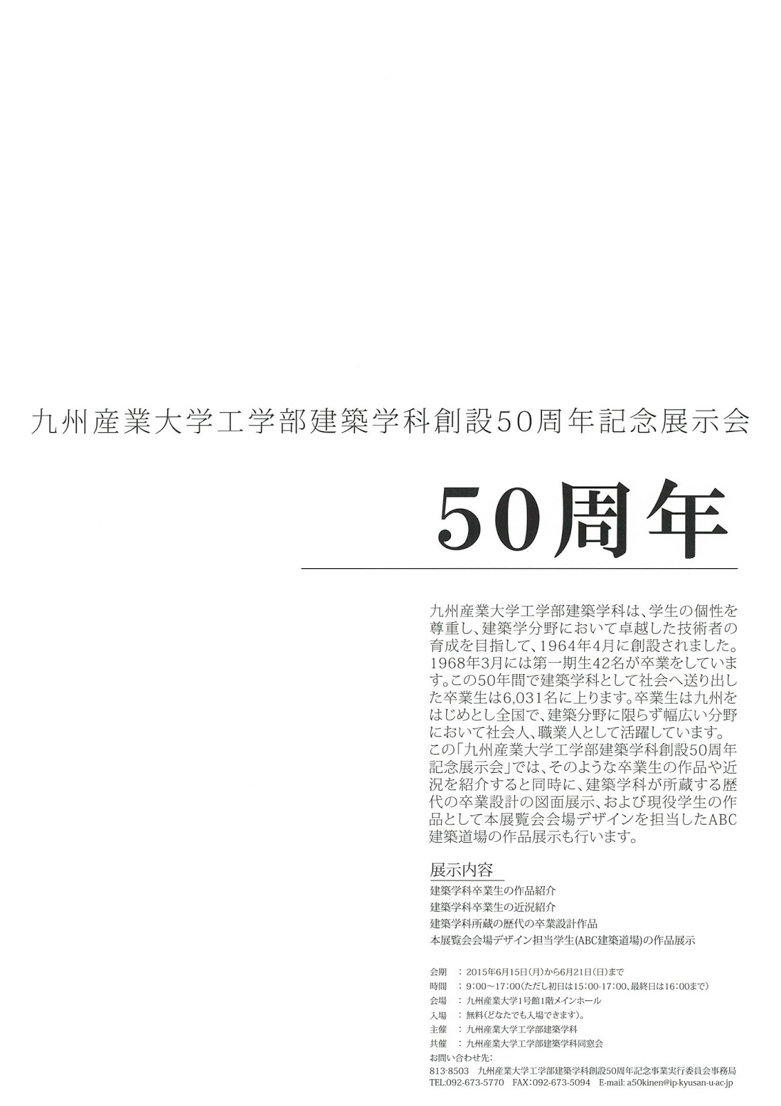 九州産業大学工学部建築学科創設 50周年 記念展示会