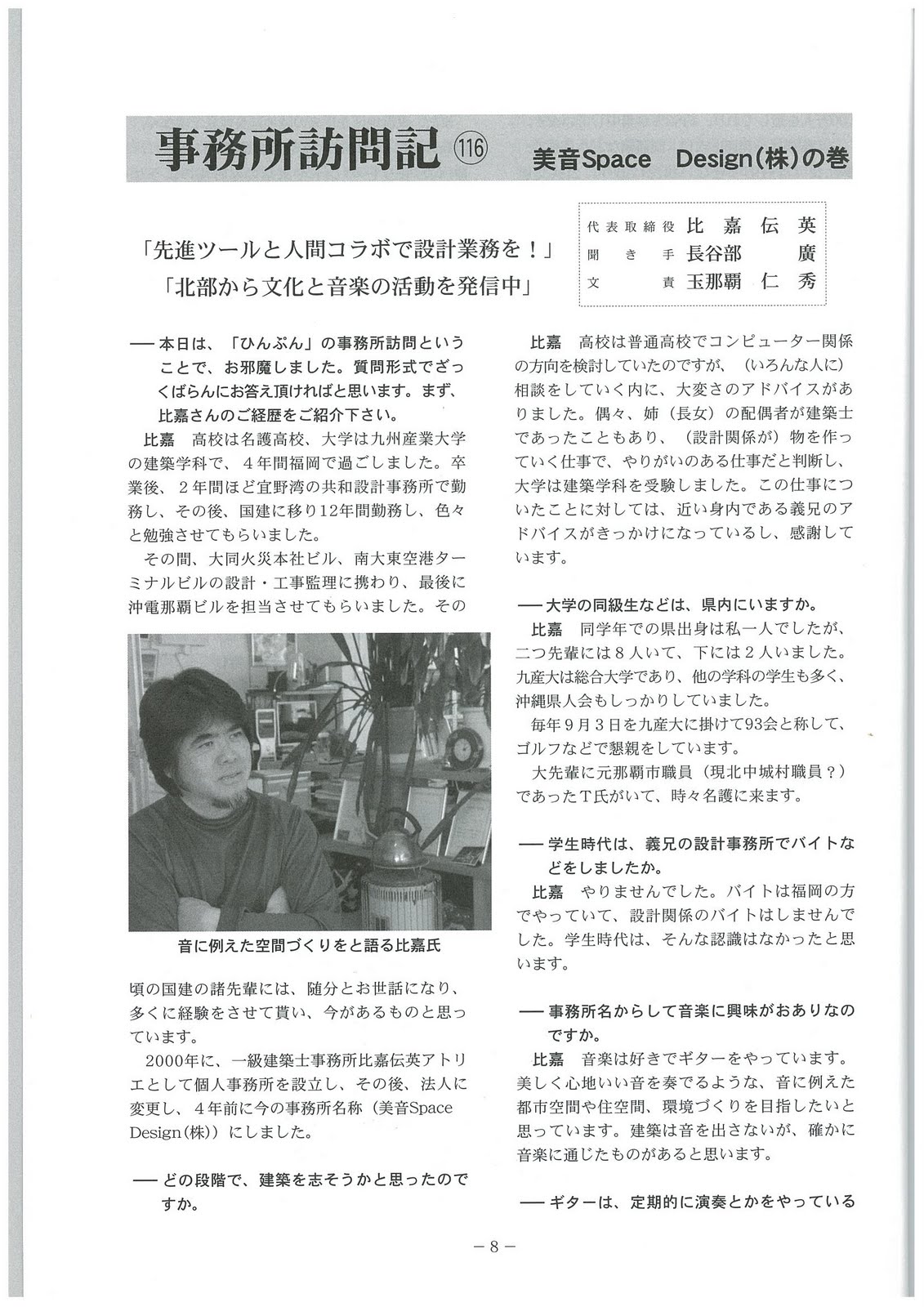 社団法人沖縄県建築士事務所協会 機関誌の事務所訪問記に紹介されました。