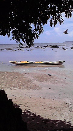 玉城にある浜辺の茶屋には、海からカヤックでお客様がやってくるらしい。